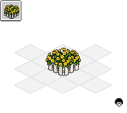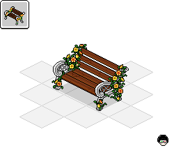 un banco, un gnomo, un parasol y flores correspondientes a los