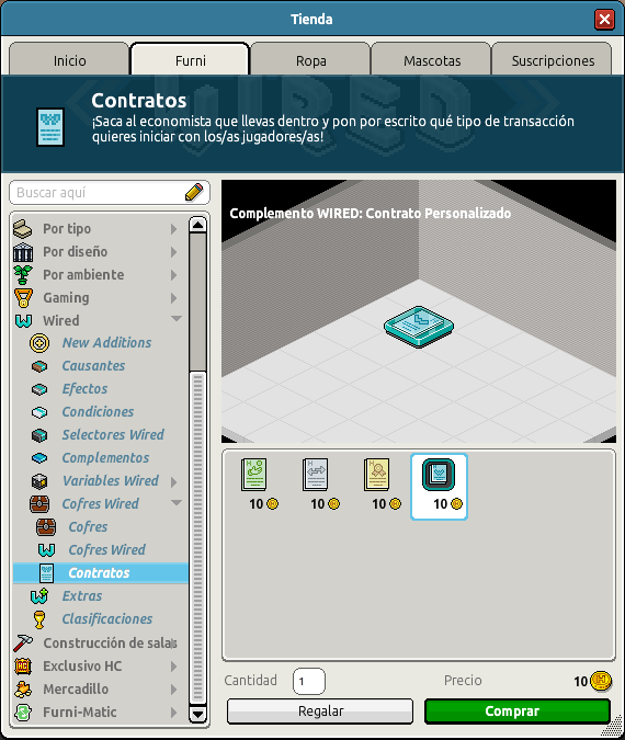 Furni » Wired » Cofres Wired » Contratos. Su precio es de