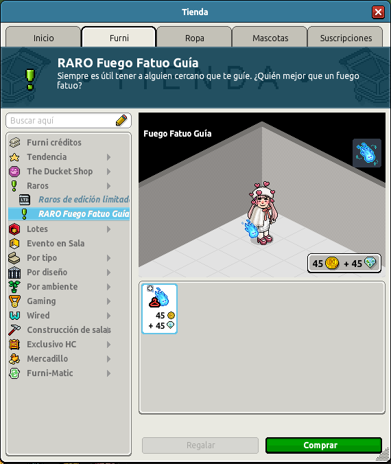 RARO Fuego Fatuo Guía, ya se encuentra disponible en el catálogo de Habbo por
