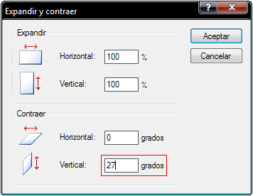 Después de ésto, seleccionaremos el cuadrado con el círculo dentro e iremos a la Barra de Herramientas en Imagen>Expandir o Contraer, y en Contraer>Vertical escribiremos 27 .