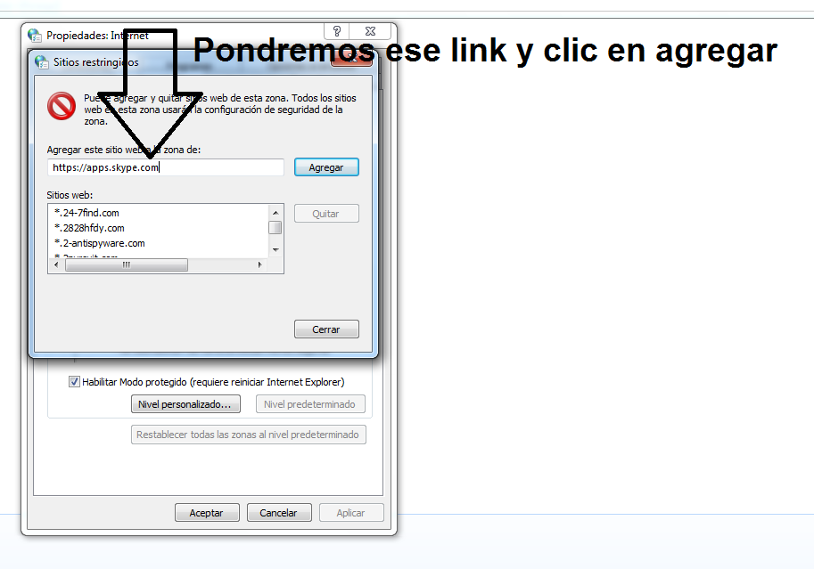 dentro de sitios pondremos el siguiente link: