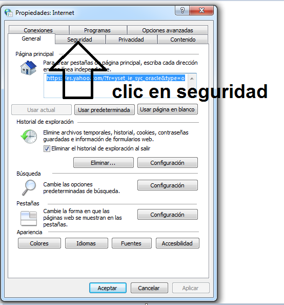y se nos aparecera lo siguiente, deberemos de presionar la pestaña "Seguridad" ->