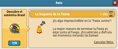 8. La hoguera de la fiesta ¡Es algo imprescindible en la "Festa Junina"!La mejor manera de terminar la fiesta es estar junto al fuego. ¡Encuéntralo y disfruta del momento mirando las llamas! Haz clic en el furni "Fogata".