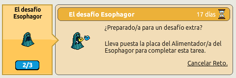 Lleva puesta la placa del Alimentador/a del Esophagor para completar esta tarea. Ponte en tu perfil la placa ganada anteriormente.