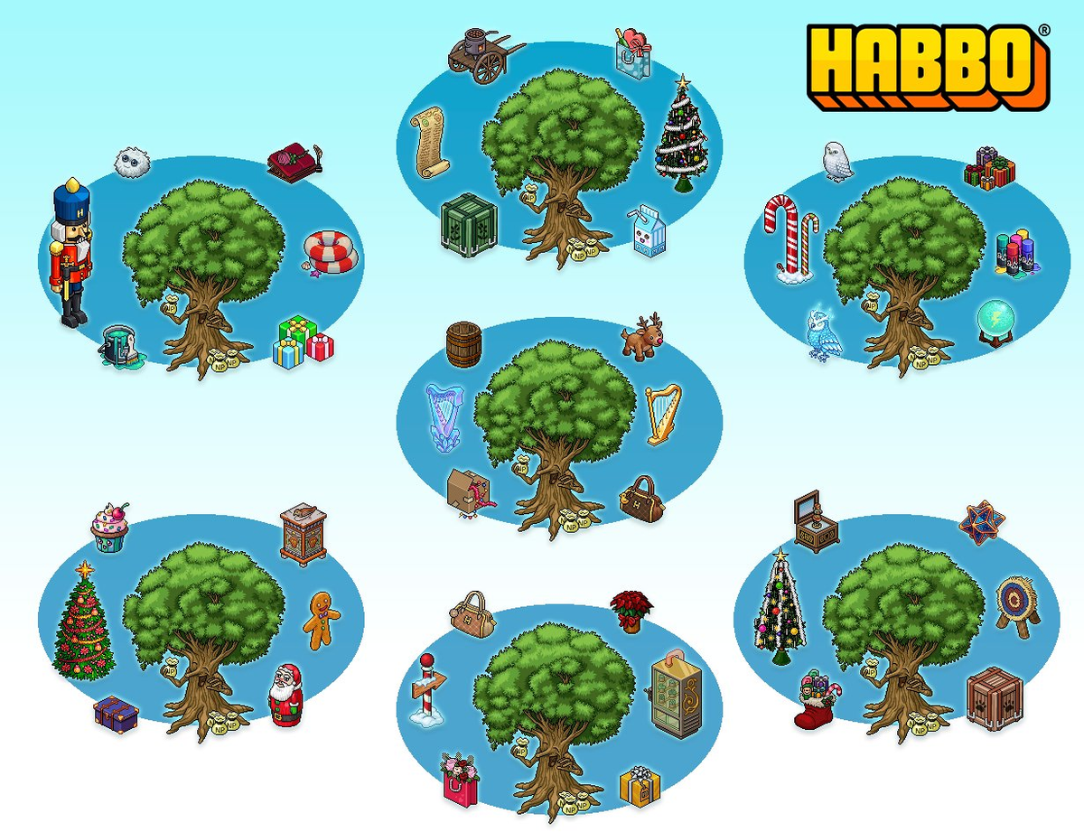 patrón de furnis diferente que puedes ver en la imagen debajo y con los que podrás saber en cuáles árboles puedes seguir buscando para encontrar el que necesitas.