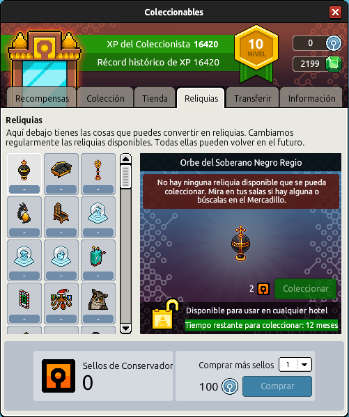 2 Sellos del Conservador. También, se han añadido nuevamente para su conversión los raros: