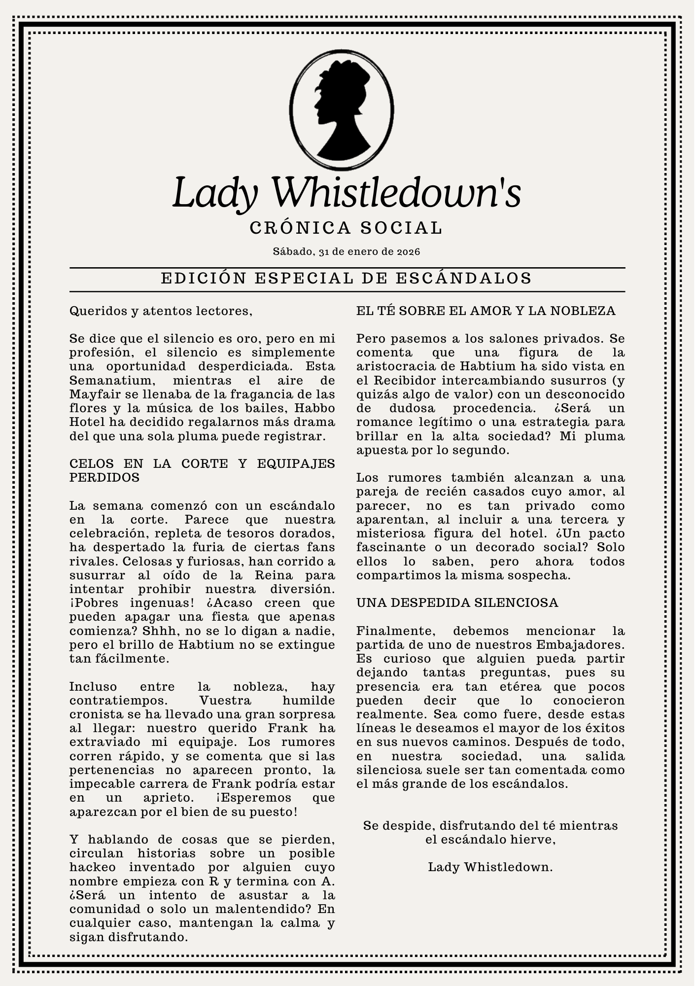 redactar un mensaje tipo chisme sobre algo que esté pasando dentro de Habbo en el