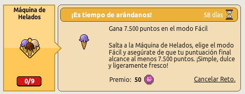 Salta a la Máquina de Helados, elige el modo Fácil y asegúrate de que tu puntuación final alcance al menos 7.500 puntos. ¡Simple, dulce y ligeramente fresco!