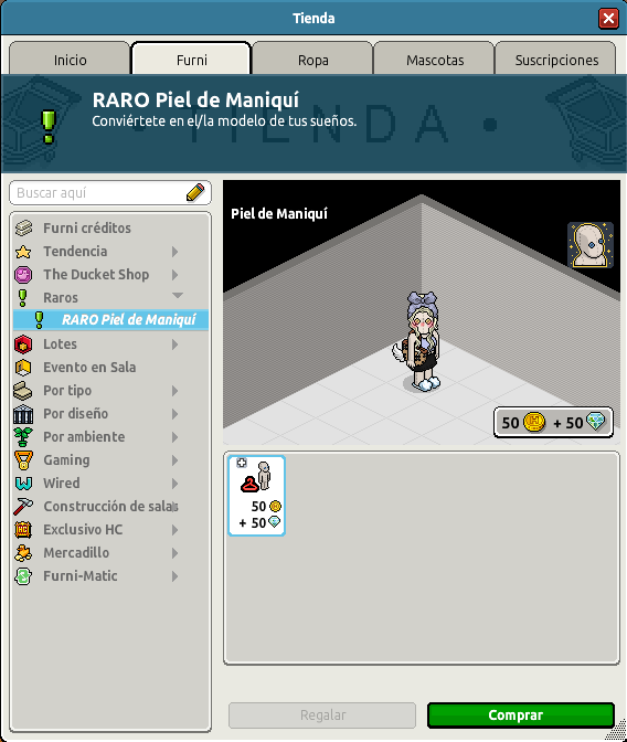 RARO Piel de Maniquí ya se encuentra disponible en el catálogo de Habbo por