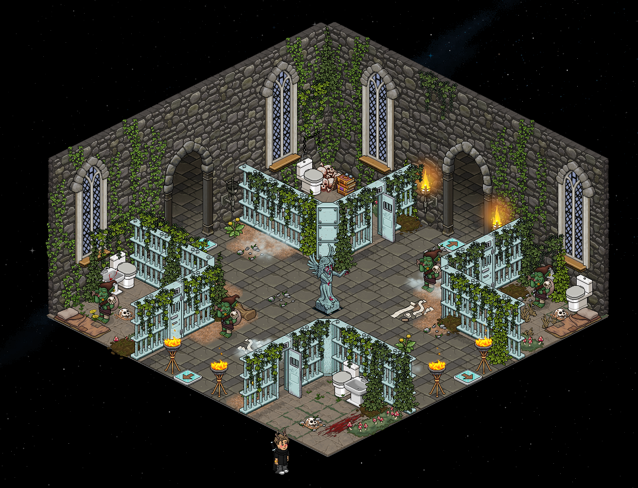 La sala y el juego han sido creadas por Luuuuucia! & -lAguss. Una vez entres a la sala, tendrás que hacer clic en la flecha del letrero indicativo para hacer fila. Cuando sea tu turno, tendrás que aguantar durante 65 segundos sin ser tocado por una horda de enemigos. En caso de que te toquen los Gnolls, perderás.