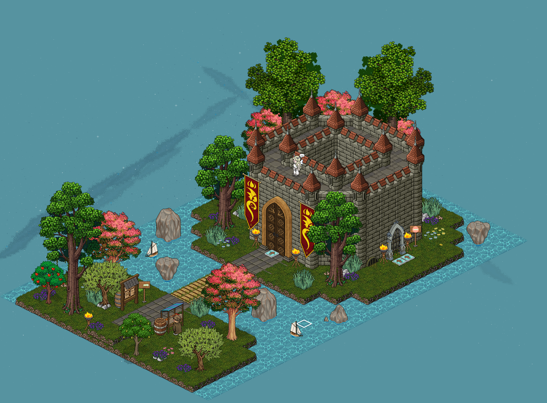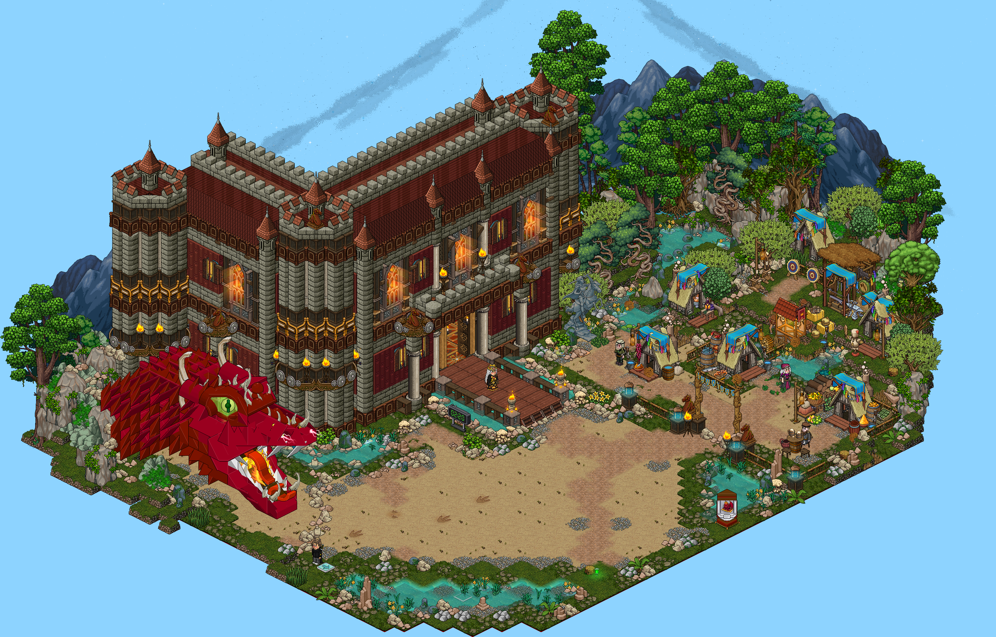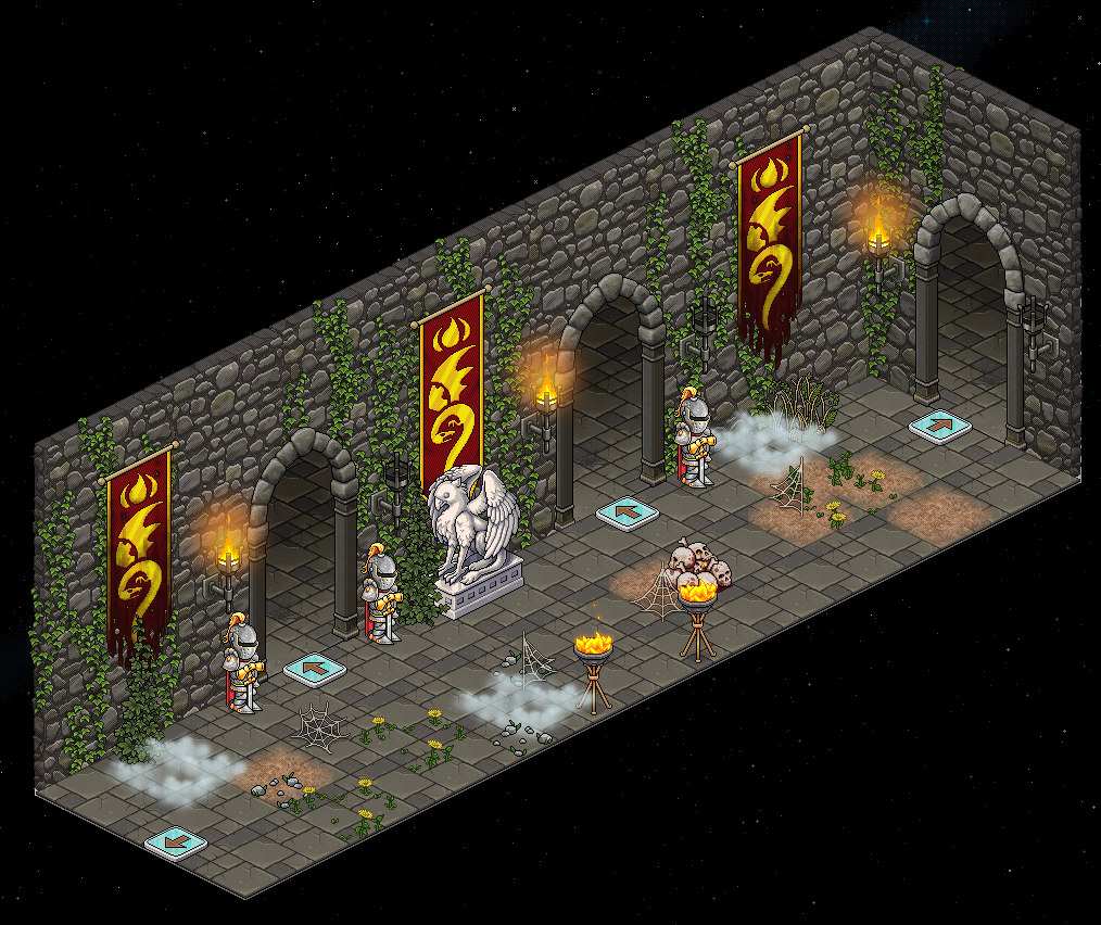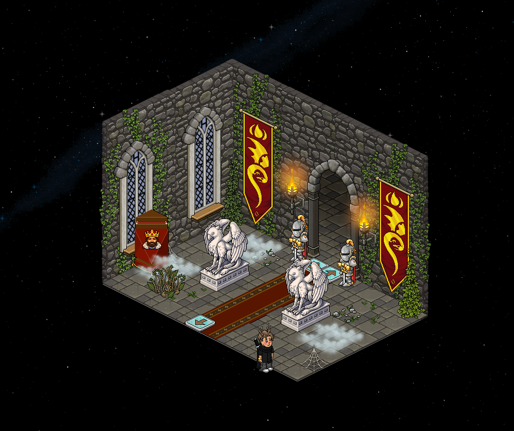 La sala y el juego han sido creadas por Pleiko & -Keira. Una vez sea tu turno, tendrás que derrotar al dragón en 2 minutos y 20 segundos. El dragón escupirá cometas, y si te dan te quitará una vida, o si te tocan los Gnolls. Para derrotarlos, haz clic sobre ellos cuando estén cerca de ti. Hay tres pociones, la poción azul (Poción Azul de Calavera): que otorga inmunidad durante 8 segundos; la poción de salud (Poción resucitadora): que te regenera 1 punto de vida, de un máximo de 3, esta no tendrá efecto si tienes el máximo de vidas; y la poción rosa (Poción Rosa de Calavera), que ataca al dragón y le quita vida. Tendrás que lanzarle varias pociones rosas al dragón para lograr superar el juego.