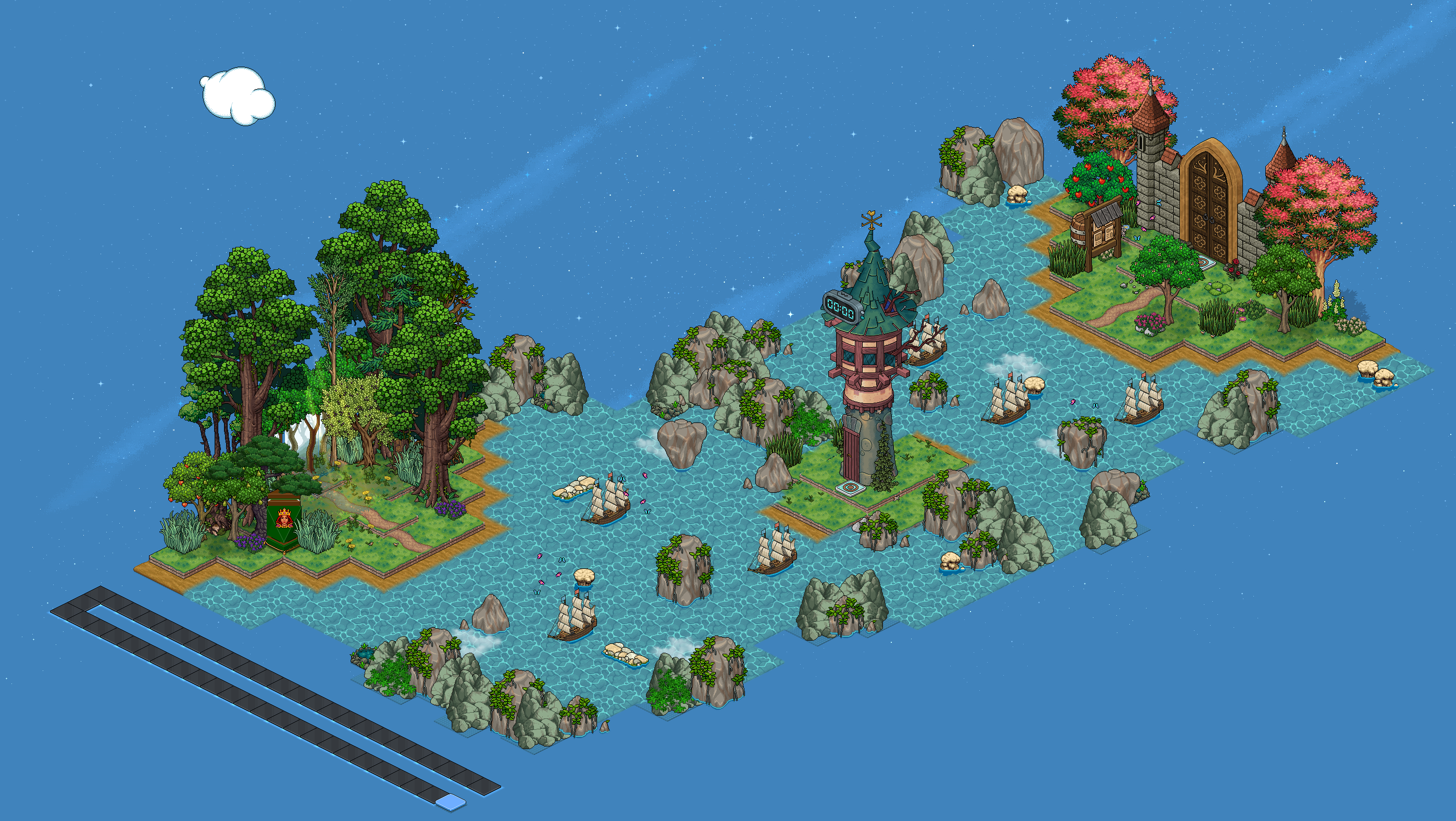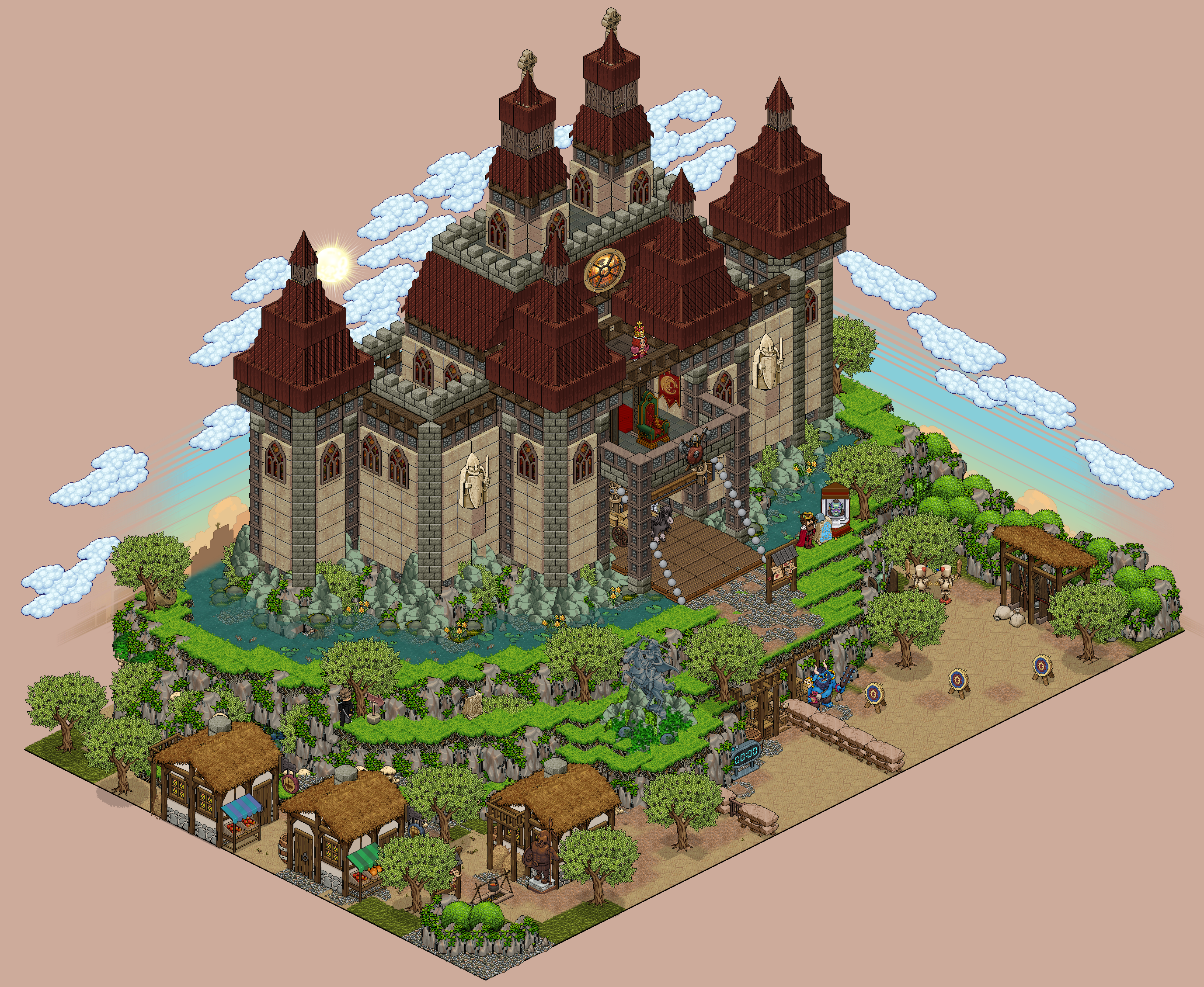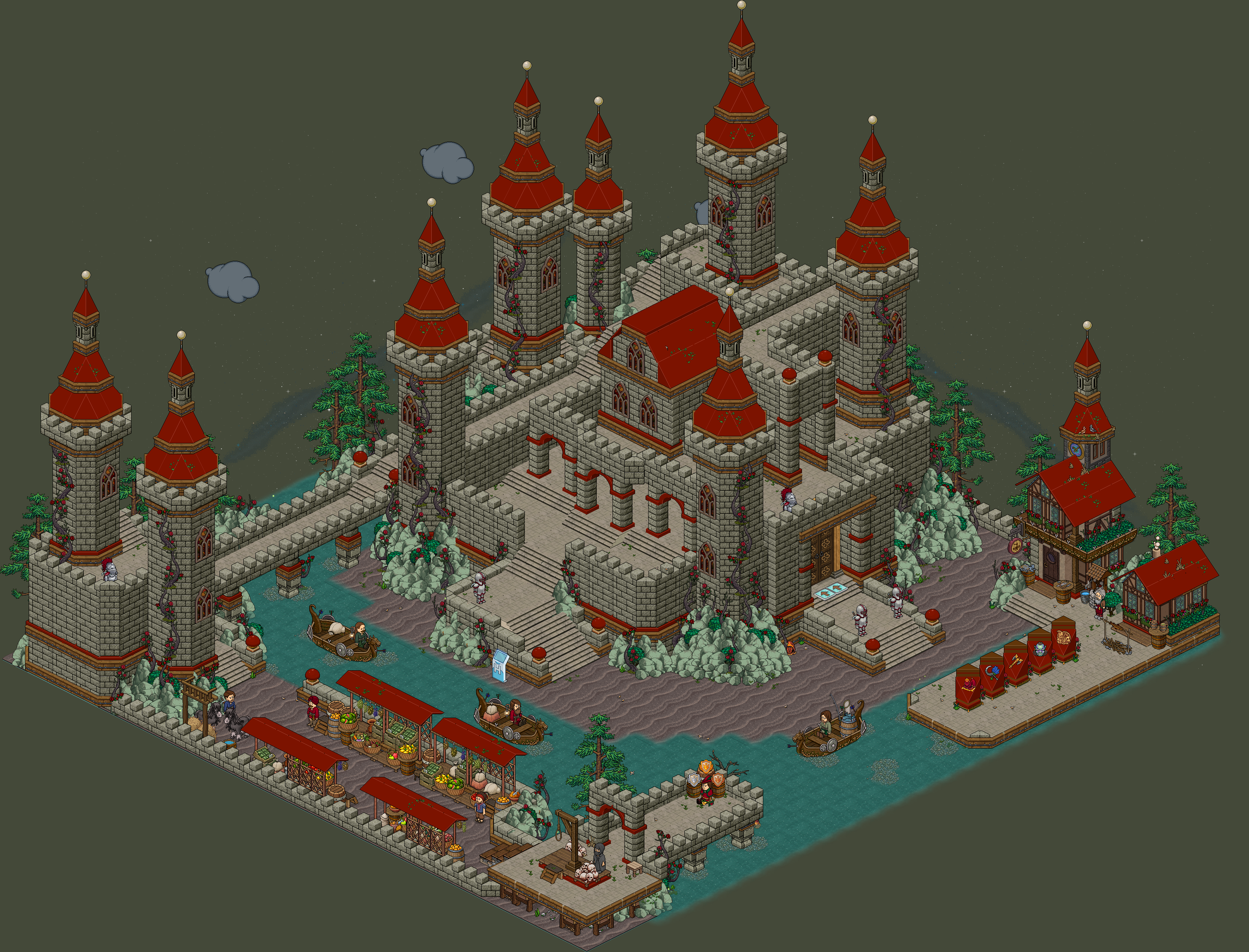 Este evento estará disponible durante una semana desde su apertura. Para comenzar, dirígete a la sala anteriormente comentada y participa en el "CazaPlacas" donde podrás ganar hasta 10 placas. Luego, ve hacia la entrada del castillo y pisa las casillas flecha para comenzar la aventura. Puedes acercarte a los aldeanos (bots) y decirles hola para tener más información sobre la historia y narrativa del evento.