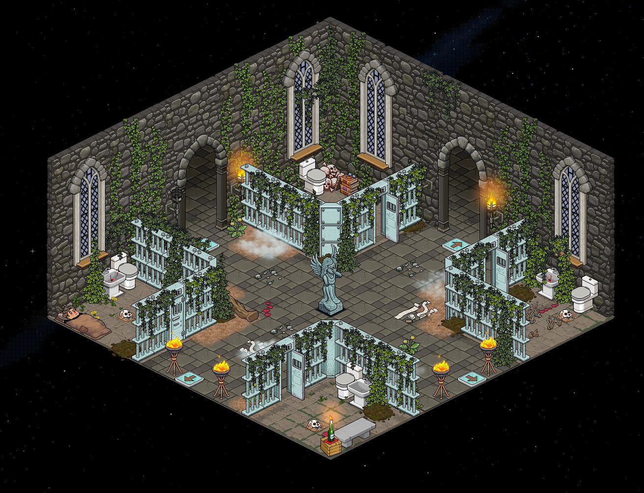 Cuando avances a la siguiente sala mediante las Casillas Flecha, irás a una sala de las catacumbas de forma aleatoria, de un total de 18 salas.
