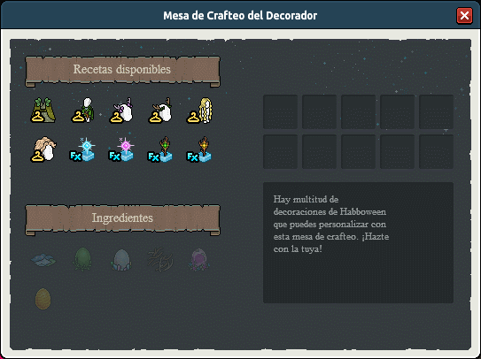 Importante: Por el momento, la Mesa Élfica de Crafteo no contiene las recetas disponibles para craftear. Se espera que sea actualizada pronto.